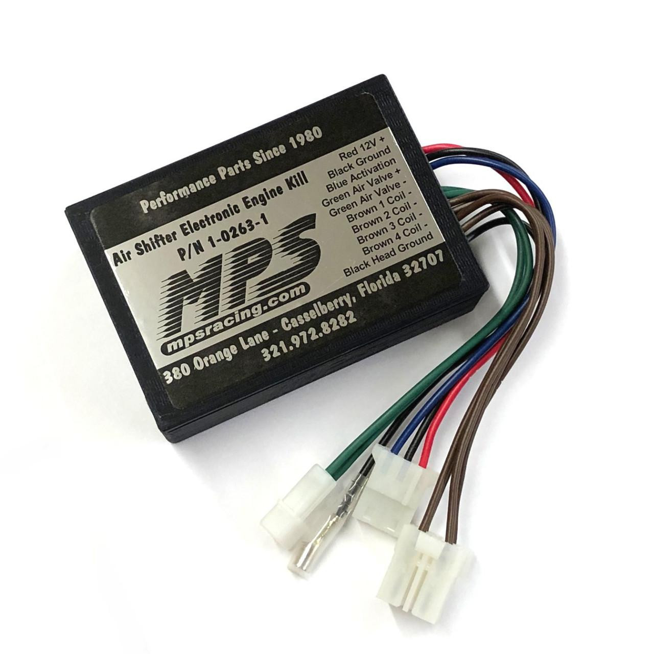 新型Gen 2スポーツバイク電子エンジンキル(1-0263-1)は、現在のほとんどのスポーツバイクに見られるような4コイル点火システム専用に設計されました。オリジナルエレクトロニックエンジンキル(1-0211)は、信頼性の低いエアキルスイッチを置き換えるために1987年にドラッグレースバイク(2コイル)向けに設計されました。新しい第2世代キルボックスは、オリジナルのキルボックスで実証された堅牢なコンポーネントを維持しつつ、いくつかの新機能を備えています。キル回路の接地を隔離しました。キルタイムはカバー下のディップスイッチで10msから100msまで設定されます。エアバルブはキルボックスで制御され、キルの遅延があります。これにより、シフトシリンダーに空気が流れていない場合のキル時間を無駄にするのを防ぎます。この遅延により、点火キルが起こる前にシリンダーがプリロードされます。