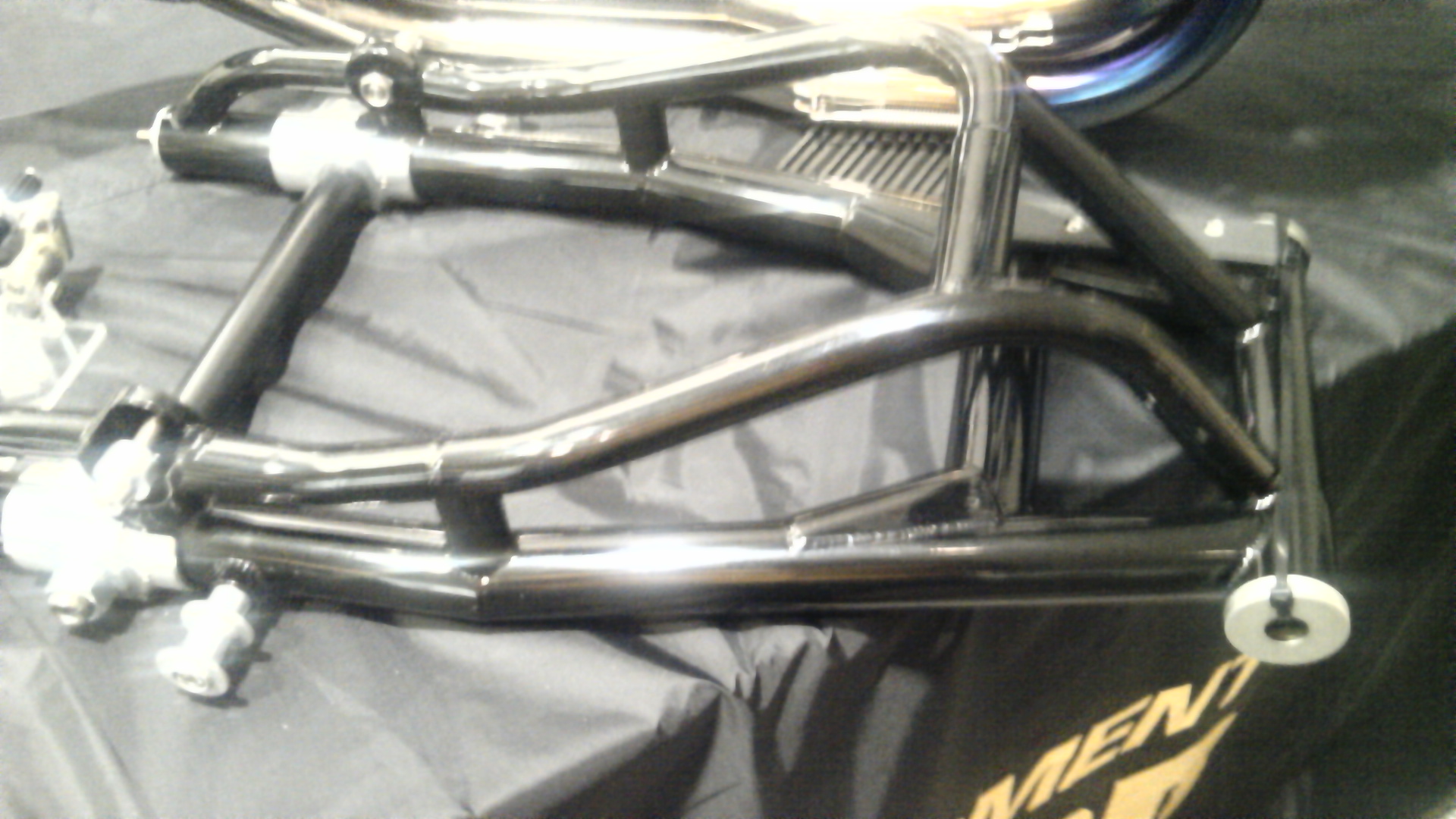 クロモリスイングアーム。上側に補強付き。ワイドタイヤ対応ですが4インチまで対応のフレーム加工が必要の無いタイプもリクエスト中。